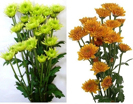 - Button Poms flower: Each disc-shaped bloom is small and is characterized by having short, stubby filaments that are soft to the touch. Each stem has a ‘spray’ of 3 to 5 blooms on average. AVAILABLE COLORS: ASSORTED, GREEN, YELLOW AND WHITE.
