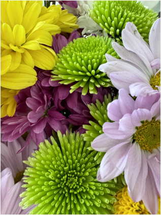 - Cushion Poms: Come with its shooting thin and elongated petals, Cushion Poms are known for their resilience and round fluffy heads that sit atop long green stems. Each stem has a ‘spray’ of 3 to 5 blooms on average. AVAILABLE COLORS: ASSORTED, YELLOW, WHITE, LAVENDER, ORANGE, BRONZE, RED, BURGUNDY, PURPLE, HOT PINK & LIGHT PINK.